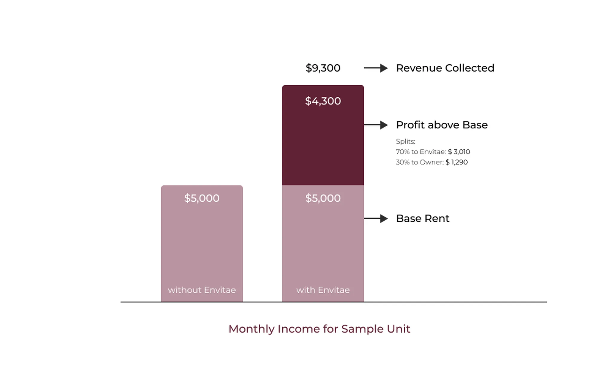 With a master lease, you receive fixed monthly rent regardless of occupancy or performance — providing stable, predictable income while Envitae assumes the risk and keeps the upside.